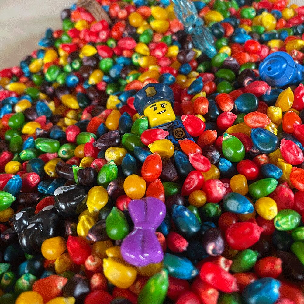 ポップコーン豆にオモチャを隠して宝探し!